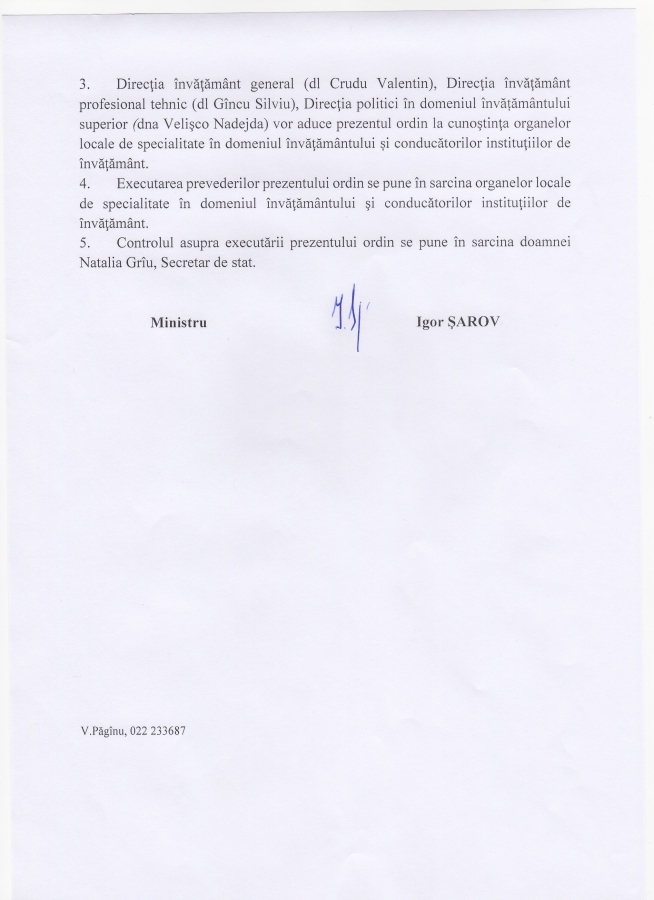 Totodată, conducătorii instituţiilor de învăţământ de toate nivelurile, publice şi private, vor continua organizarea procesului educaţional la distanţă prin utilizarea tehnologiilor informaţionale şi comunicaţionale, în perioada în care este restricţionată desfăşurarea procesului educaţional în incinta instituţiilor de învăţământ, în conformitate cu următoarele documente normative: