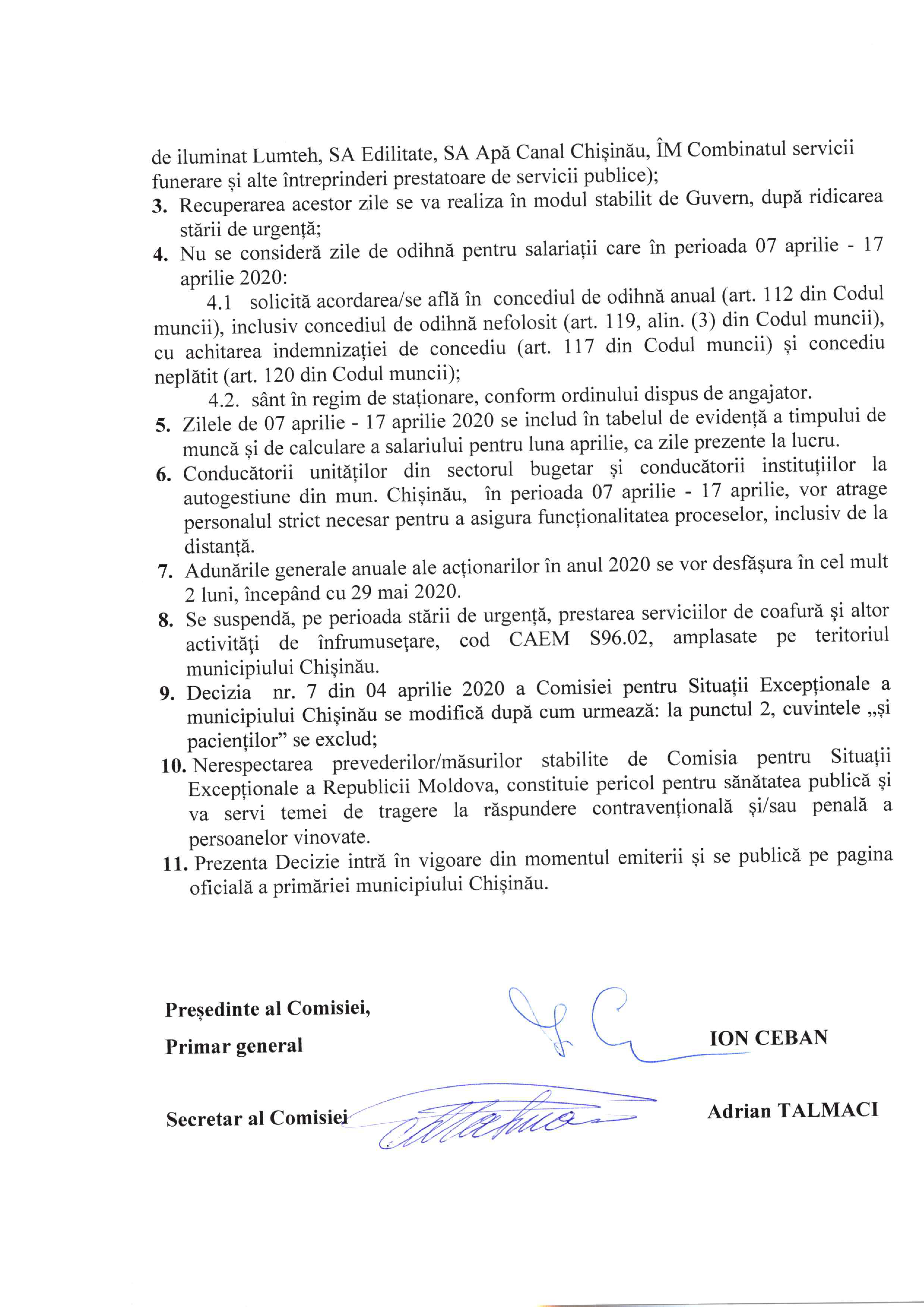 Decizia nr.8 a Comisiei pentru Situații Excepționale a municipiului Chișinăui