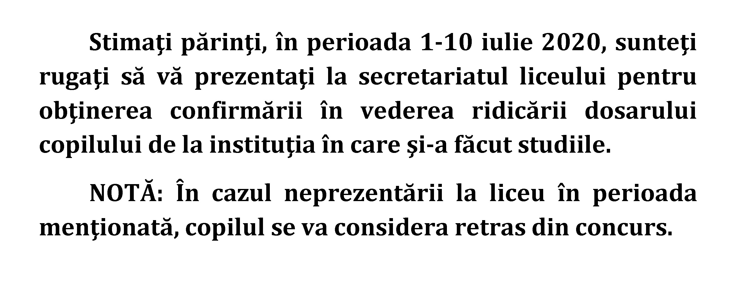 2020-06-30 În atenţia părinţilor elevilor înmatriculaţi în clasa a V-a în Instituţia Publică Liceul Teoretic „Spiru Haret”, anul de studii 2020-2021!