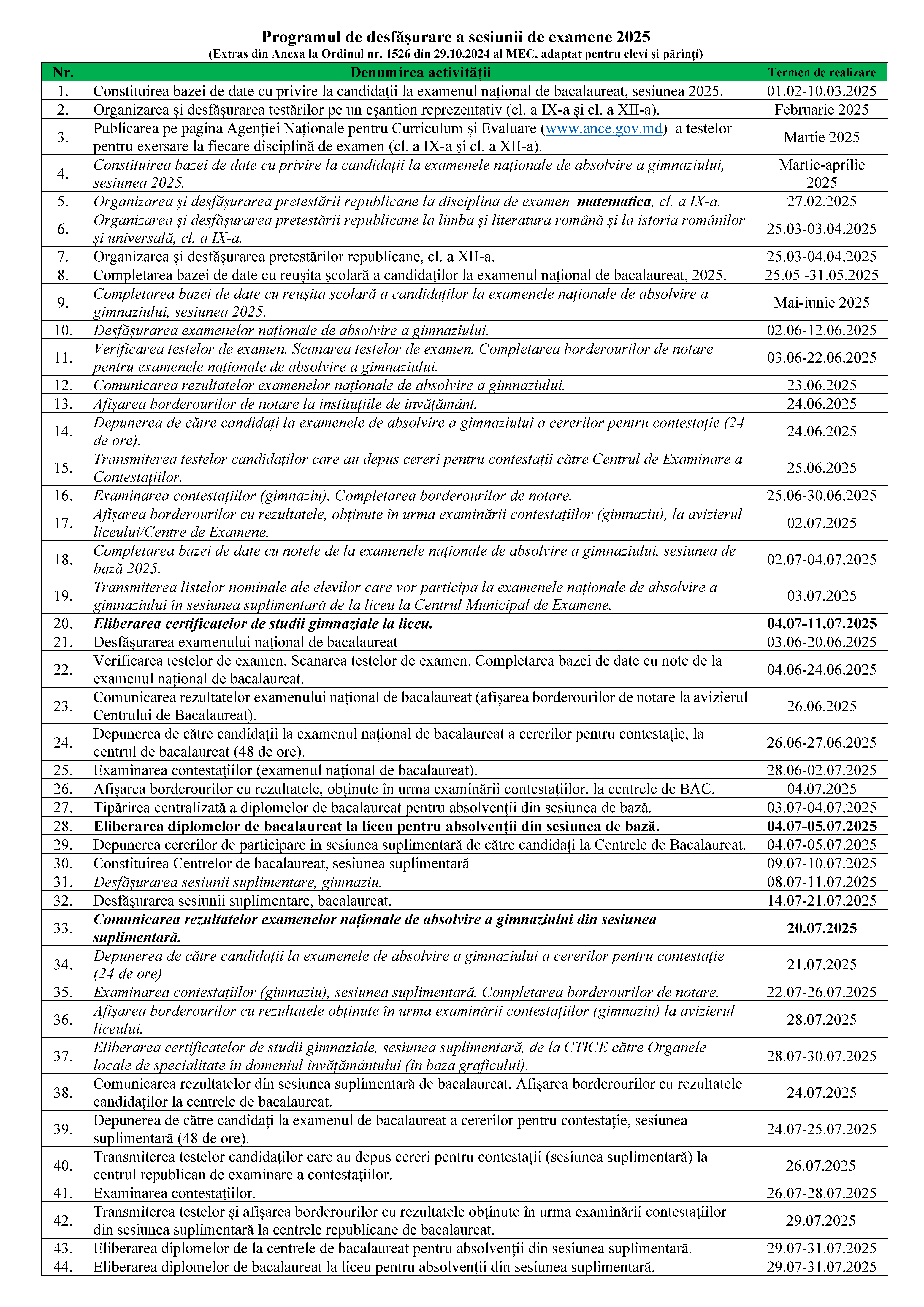 PROGRAMUL DE DESFĂȘURARE A SESIUNII DE EXAMENE 2025
