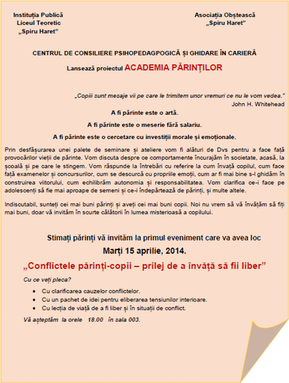 CCPGC Lansează proiectul ACADEMIA PĂRINȚILOR