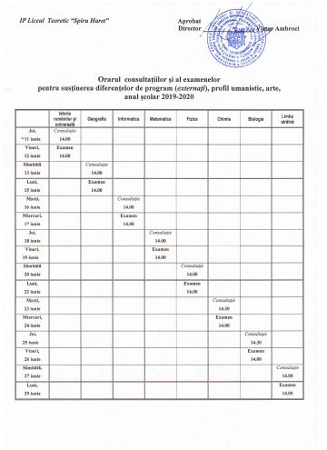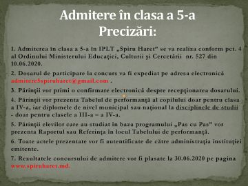 Administraţia Instituţiei Publice Liceul Teoretic "Spiru Haret" anunţă ...