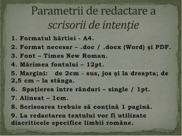 CERINŢE PRIVIND REDACTAREA SCRISORII DE INTENŢIE PENTRU ADMITEREA ÎN CLASA A 5-a