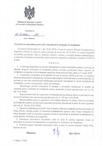 Se prelungește perioada de suspendare a procesului educațional în incint...