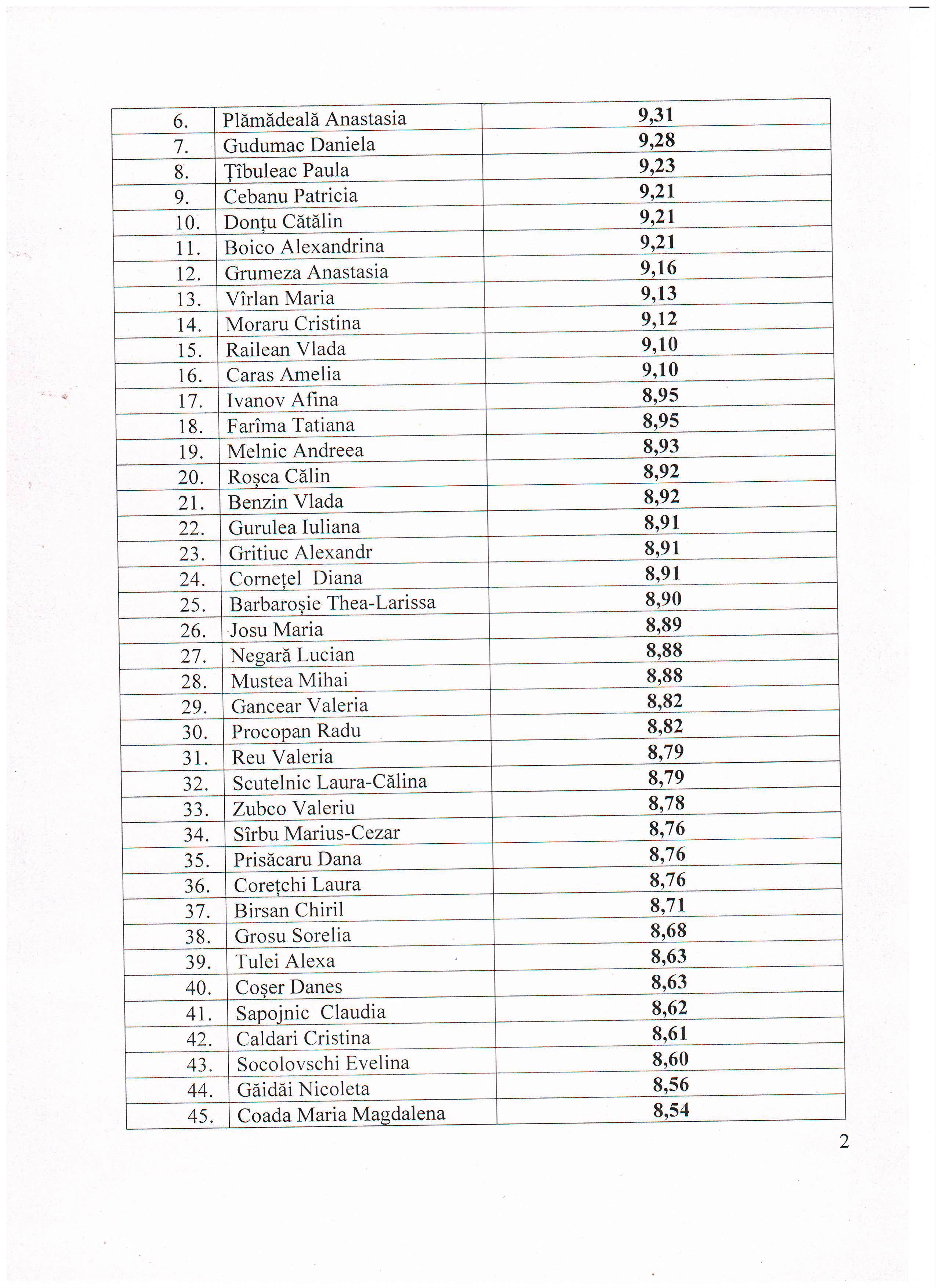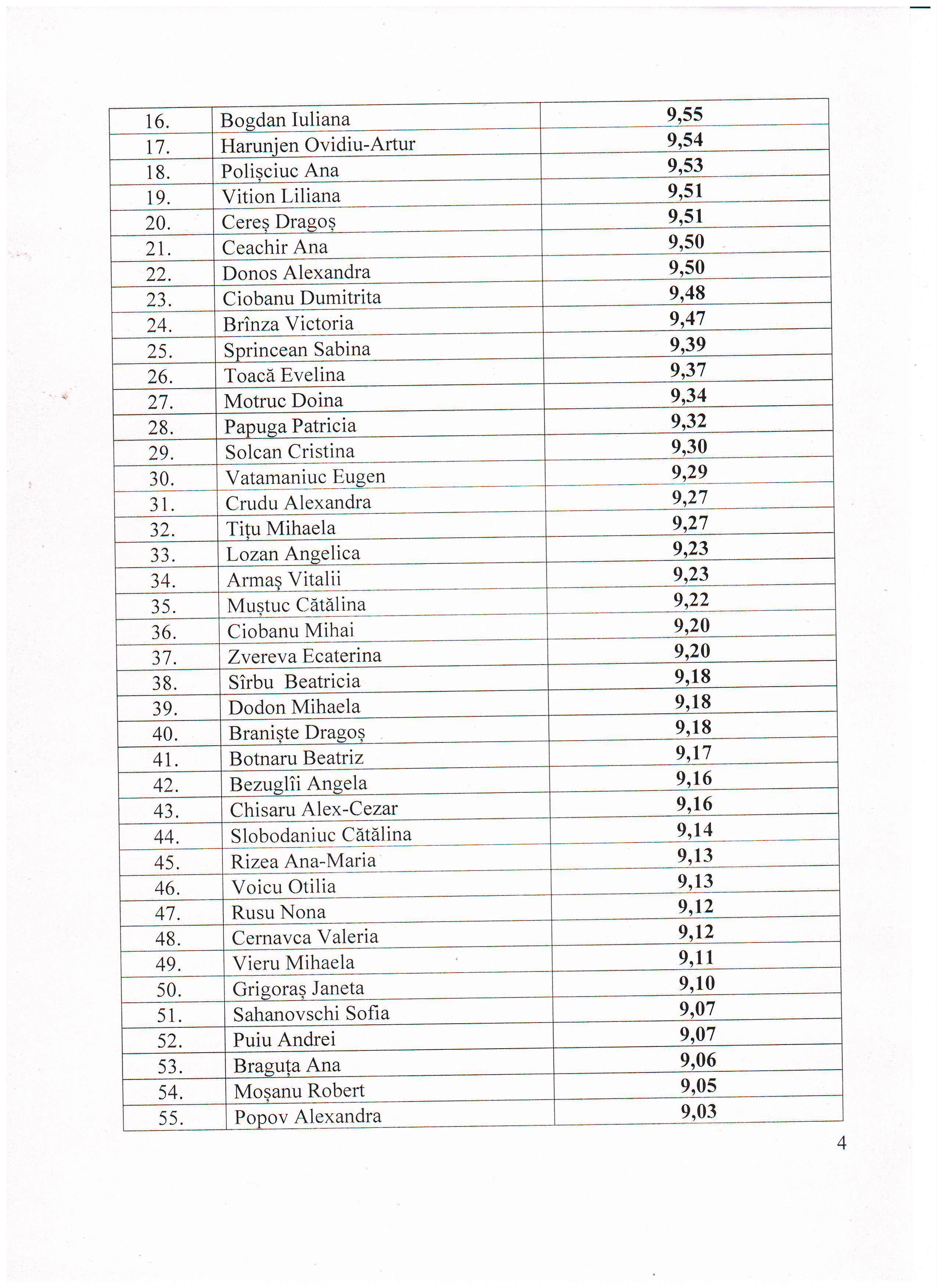 NOTĂ: MEDIILE DE CONCURS AU FOST CALCULATE CONFORM ARTICOLULUI 21 DIN METODOLOGIA DE ADMITERE A ELEVILOR ÎN ÎNVĂȚĂMÂNTUL LICEAL, FĂRĂ ROTUNJIRI. ACESTEA POT SĂ COINCIDĂ CU MEDIILE DE PE PLATFORMA escoala.chisinău.md SAU POT SĂ DIFERE CU +/- 0,01 DE ACESTEA.