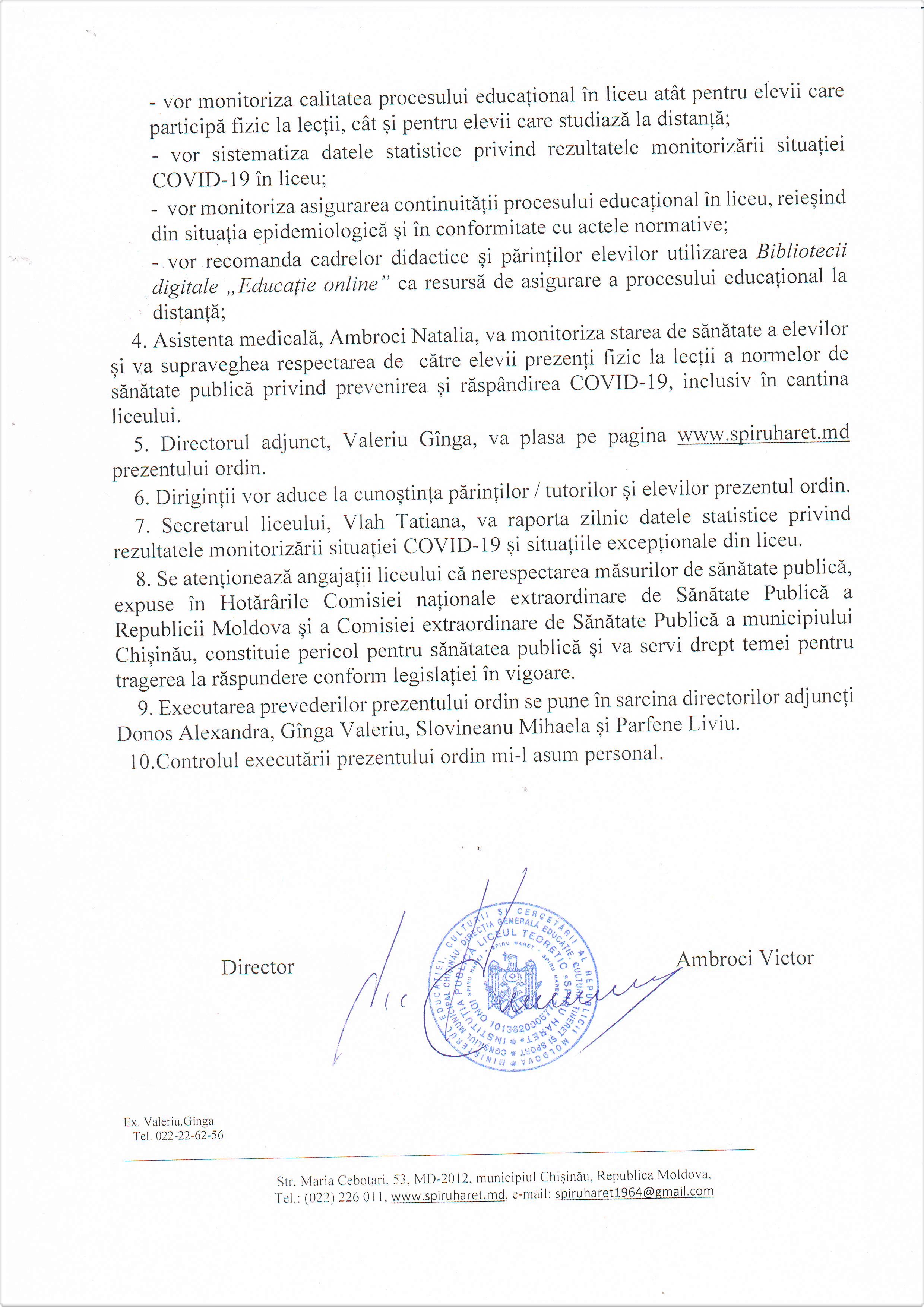 ORDINUL CU PRIVIRE LA ORGANIZAREA PROCESULUI EDUCAȚIONAL ÎN LICEU, ÎNCEPÂND CU 16.03.2021