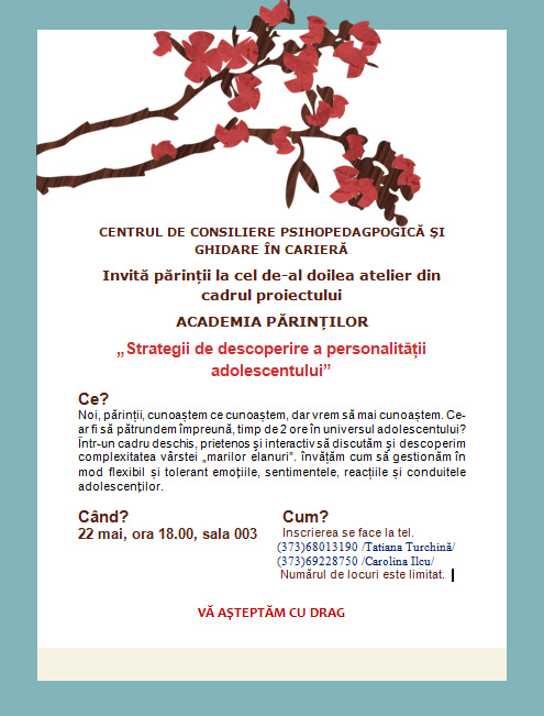 CCPGC invită părinții la cel de-al doilea atelier din cadrul proiectului